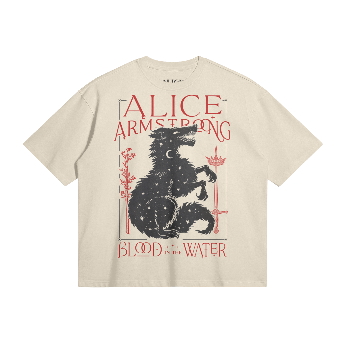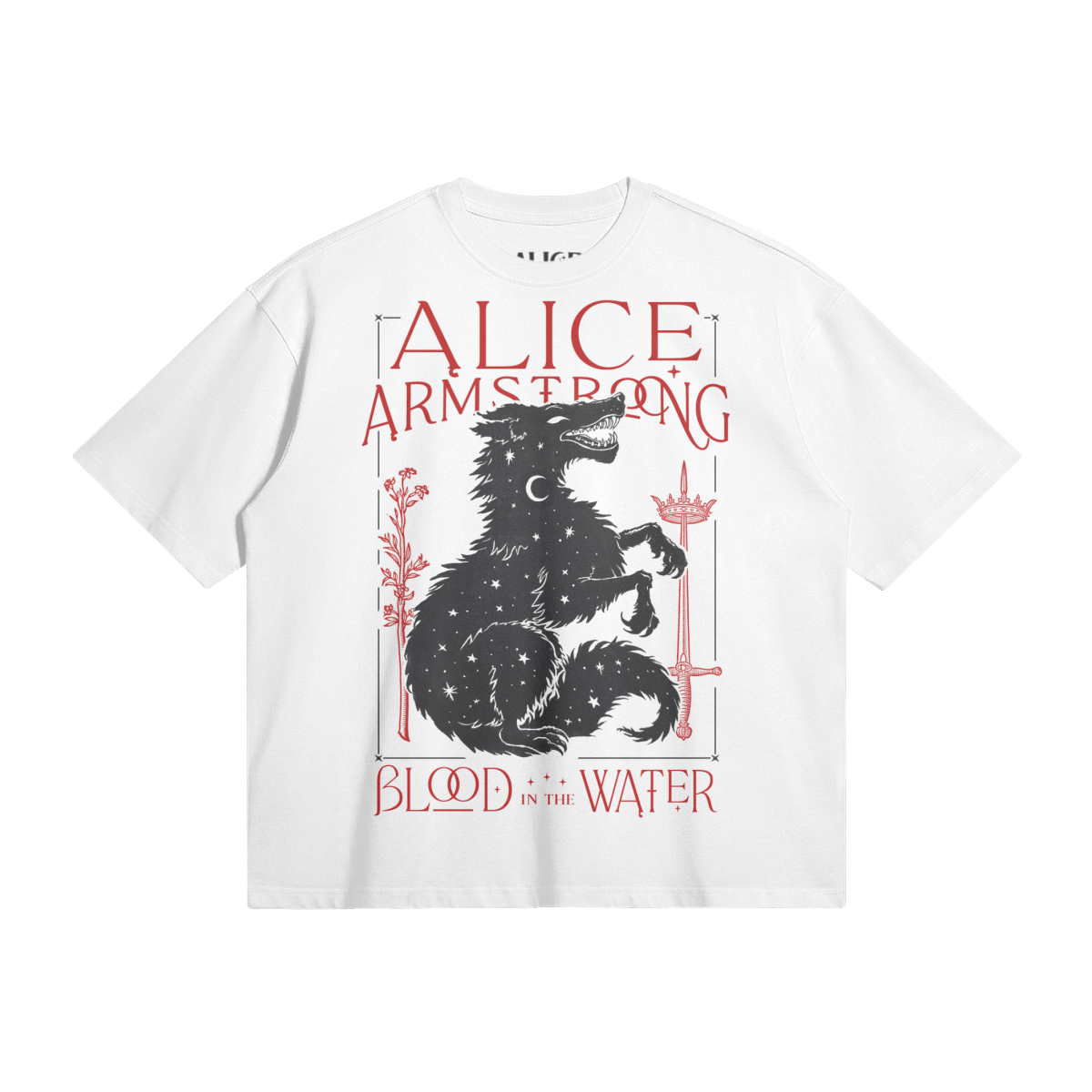 The official t-shirt to accompany the release of Alice's brand new EP, Blood in the Water! It has an oversized, boxy cut with drop shoulders, giving it an effortless, comfortable and trending shape. There is also a dark version of the t-shirt in the store.